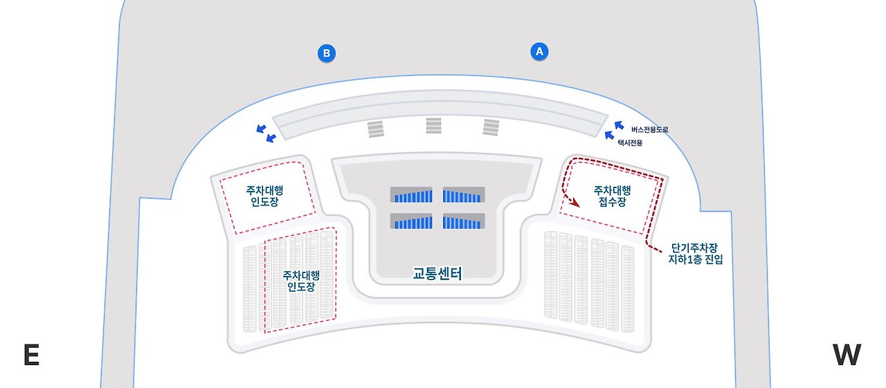 | 단기주차장 | 무료 | 2,400원 | 24,000원 | X | 가능 (T1, T2) |